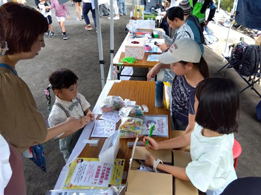 200枚以上用意したスタンプラリーの台紙は早々とすべて配り終え、後半はテントの中で景品を渡す係を担当。そして、スタンプラリーの終了時間ぴったりに、用意していた景品の最後のひとつを参加者の方にお渡しして、イベントが終了!奇跡的なタイミングに、子どもたちも大人たちも一緒に大喜び。大盛況のうちに幕を閉じました。